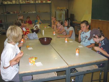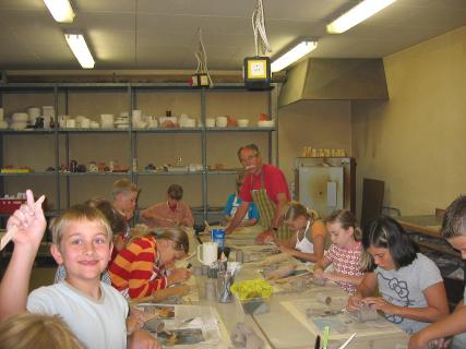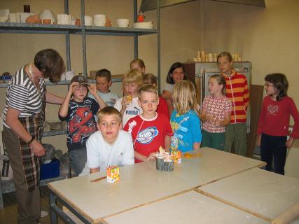 07.08.2007 Zum fünften Mal in Folge startete auch dieses Jahr das Kindertöpfern, welches Ingbert Maisch, als Beitrag des Kunstkreises im Rahmen des Malscher Ferienprogramms , leitete. Auch in diesem Jahr war die Nachfrage überwältigend. Nahezu 100 Kinder wollten an der Veranstaltung im Tonraum der Johann-Peter-Hebel Schule teilnehmen, wovon leider nur 12 Jungtöpferer/innen zum Zuge kamen. Die Gruppe arbeitete überaus diszipliniert an ihrem Vorgabeobjekt, einem Halter, der zur Ablage von Stiften, Radiergummi, Füller, Büroklammern, etc. dienen soll. Herzlichen Dank noch an Carmen Schäufele, welche den Kindern half ihre Ideen in 3-D zu formen. !Wichtig! Abholtermin ist Dienstag, der 16.10. von 15 bis 18 Uhr an der Hebelschule. |